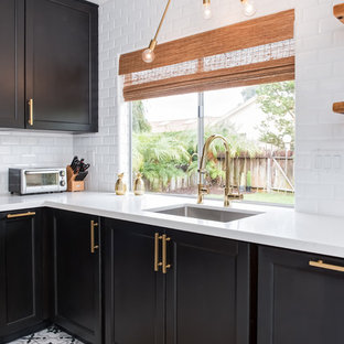If your personal style leans more to the maximalist end of the spectrum, a crisp set of subway tiles is a clever way to add some decorum to your kitchen. The backsplash in this Hollywood Hills home breaks up the custom-made cabinetry painted in Farrow & Ball's Hague Blue and Granada Tile's patterned flooring. Upon first glance, this subway tile backsplash may not seem extraordinary, but by continuing the tile all the way to the ceiling, the room feels larger, the walls are easy to clean and the kitchen boasts more texture and interest. Subway tile offers tons of room