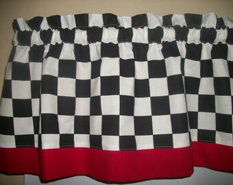suggestion: red white and black kitchen curtains